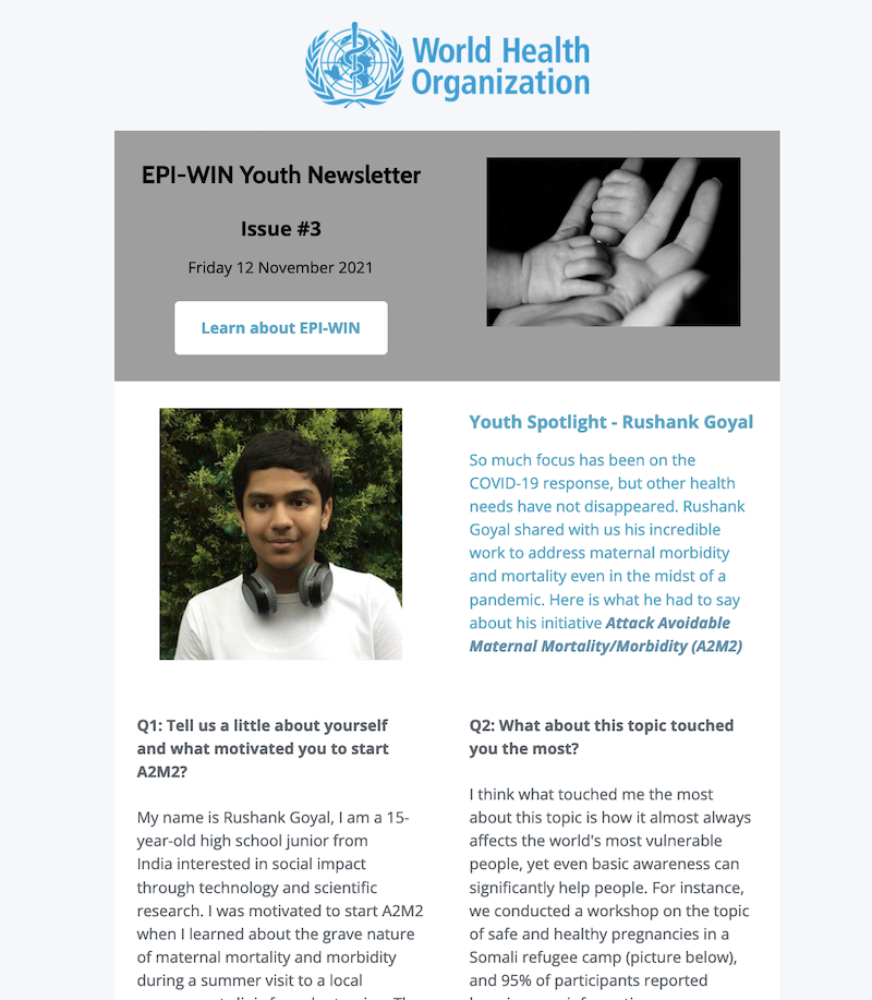 WHO EPI-WIN has been in collaboration with representatives from several youth networks since the start of the pandemic, including the Global Shapers community, the International Federation of Medical Students Associations (IFMSA), the #MoreViralThanTheVirus movement, and the Health and Information Literacy Access Alliance (HILA Alliance - GAPMIL/UNESCO).