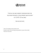 Critical Sex and Gender Considerations for Equitable Research, Development and Delivery...